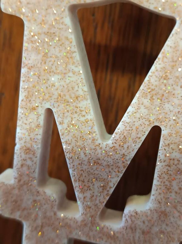 Kleur: wit met lichtroze glitter